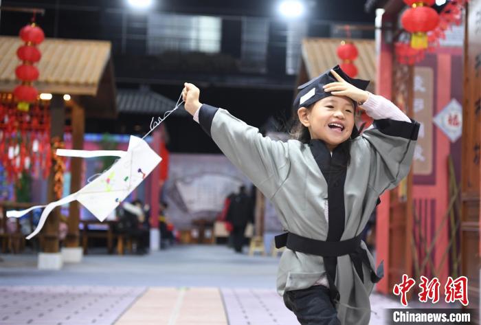 中新网北京1月11日电 (记者 应妮)岁末年初之时,北京古诗小镇11日开启了一场以“大手拉小手”为主题的开年活动。一群群身着古装的孩子们在这里学造纸、做糕点、做花灯……沉浸式游戏的同时深度理解了中国传统文化习俗。