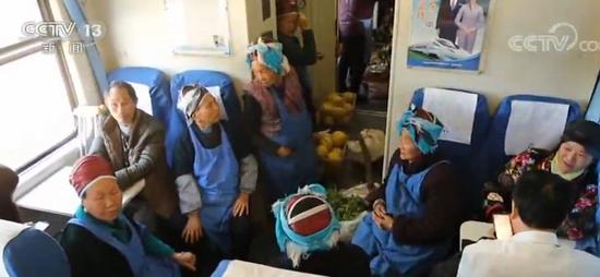 列车长 胡贵川:我们经常看到七八十岁的老人家,挑几十斤菜,到凯里去卖,换几十块钱回来,来回需要七个小时。七个小时里他们都是自己带米饭和一点盐菜,到车上两口就吃了,舍不得在凯里站吃碗粉或者炒饭。