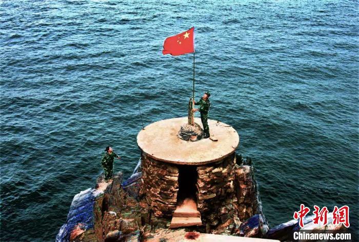 王继才生前在孤岛上升起五星红旗的资料照片 主办方供图