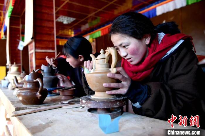藏族姑娘制作藏陶。 安源 摄