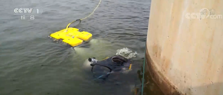 高铁沂河特大桥是去年8月份竣工的。李壮此次下潜需要摸清桥墩的状况,为桥墩建档。第二个气瓶用到一半的时候,李壮的下潜任务完成。结果显示,桥墩的健康状况良好。