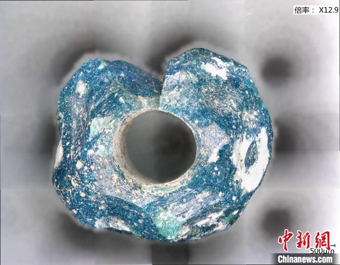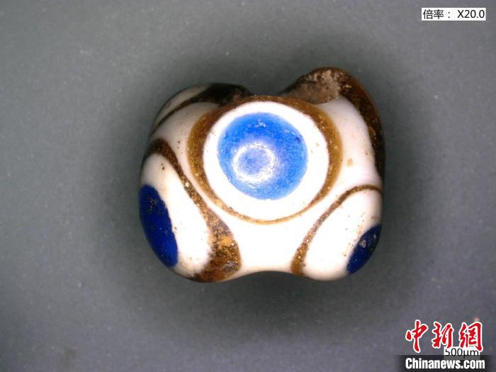 图为辽宁东大杖子战国墓地内发现的“蜻蜓眼”。 辽宁省文物考古研究院供图 摄