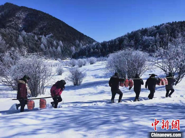 中新网湖北神农架1月15日电 (文洁 黄候 郭晓莹)据神农架国家公园管理局15日消息,当地大规模野外补食行动已经展开。工作人员连日来踏着齐膝深的积雪,前往野生动物出没地进行冬季野外补食。