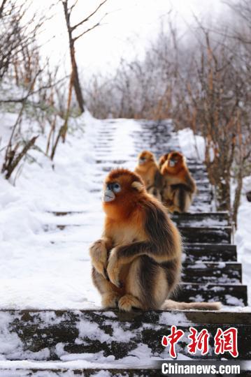金丝猴在工作人员必经之地“拦路” 文洁 摄
