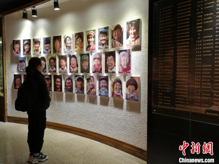 不过,独龙族的服饰文化、宗教节庆、生产技艺等,被完整保存在博物馆里。其中,“文面女”作为独龙族传统文化的“活化石”,用整整两面墙进行了展示——66位有确切记载的独龙族文面女的照片被一一排列在墙上,她们的名字及生卒时间也镌刻在黑色的大理石上。