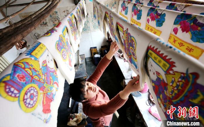 资料图:春节前夕,最具年味的杨家埠木版年画销售火爆。潍坊市委宣传部供图