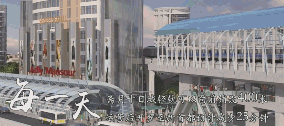 每一天,斋月十日城轻轨可以向前铺设400米,运营后开罗至新首都预计减少25分钟,将有效缓解开罗交通压力,便利10余个卫星城近500万居民的日常通勤。