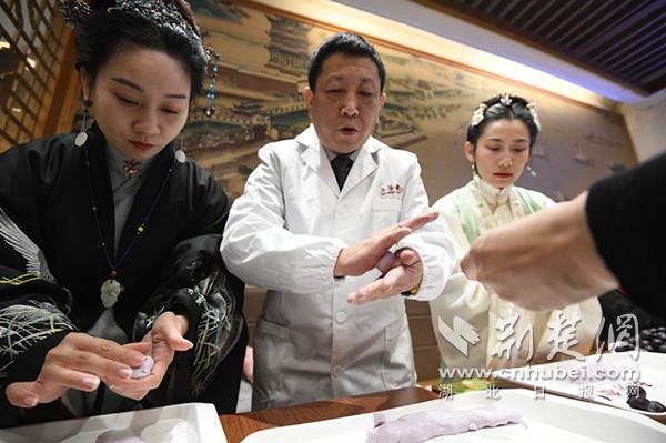 尽管叠式汤圆一般正月初八才开始制作销售,但在今天的开幕式现场,五芳斋的的师傅还是制作了十份叠式汤圆,送给了十位幸运顾客。