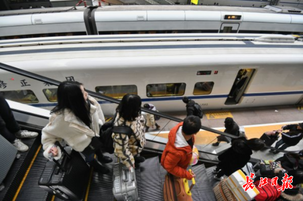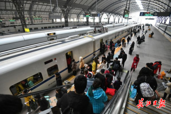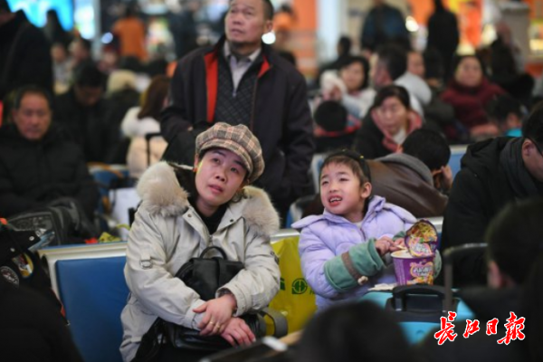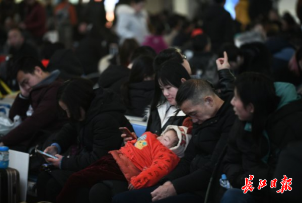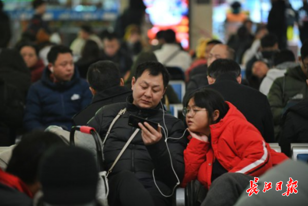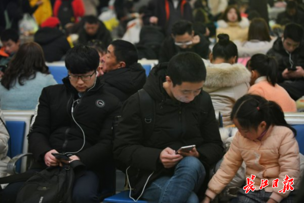长江网1月16日讯 2020年1月16日,汉口站候车大厅和站台上挤满了南来北往的返乡旅客。随着春节临近,节前学生流、务工流等多种客流叠加,车站客流总量持续高位运行,春运高峰即将到来。(记者苗剑 摄)