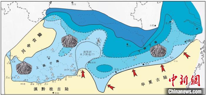 扬子区上奥陶统五峰组顶部稀少贝组合地理分布图。 南古所 供图