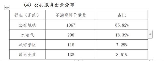 从年度不满意评价医疗卫生机构分布来看,市区医院不满意评价数量占比最高,达到65.75%;妇幼保健院不满意评价数量占比最低,仅2.39%。从年度不满意评价公共服务企业分布来看,公交地铁不满意评价数量占比最高,达到65.82%;旅游景区不满意评价数量占比最低,仅7.28%。其中,武汉水务集团、市天然气公司、中国电信武汉分公司等单位平均不满意评价数量低于全市平均水平。