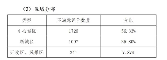 从年度不满意评价区域分布来看,中心城区平均不满意评价数量高于全市平均水平,开发区、风景区平均不满意评价数量低于全市平均水平。其中,汉阳区、蔡甸区、江夏区、武汉开发区、东湖开发区、东湖风景区等6个区参评单位平均不满意评价数量低于全市平均水平;江岸区、武昌区、洪山区、东西湖区等4个区参评单位平均不满意评价数量高于全市平均水平;江汉区、硚口区、青山区、黄陂区、新洲区等5个区参评单位平均不满意评价数量基本与全市平均水平持平;