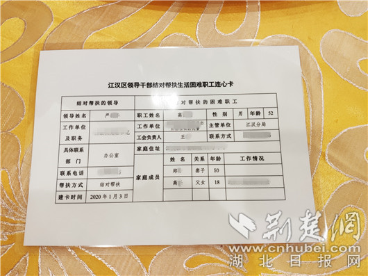江汉区领导结对帮扶困难职工 记者 黄康摄