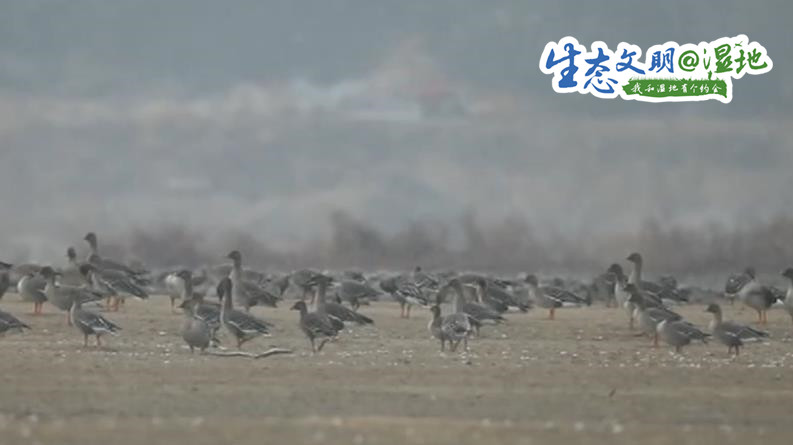 央视网消息:安徽霍山县的东淠河湿地公园,近期这里已经聚集了上千只前来过冬的大雁和几百只小天鹅。