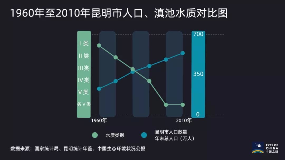 随着昆明市人口的增长,滇池水质一路下行。