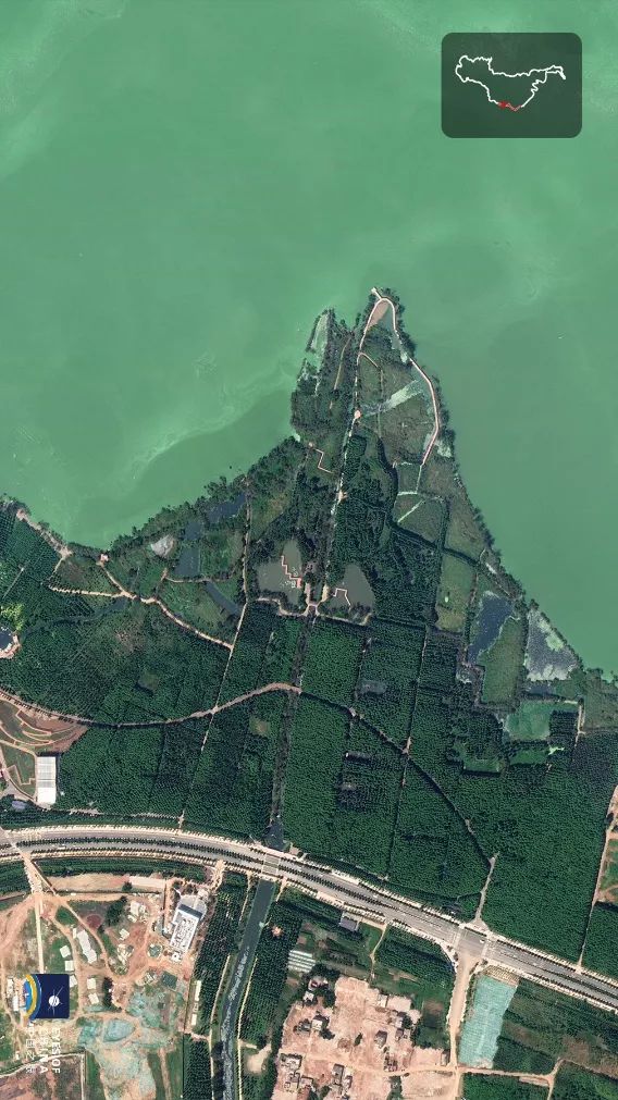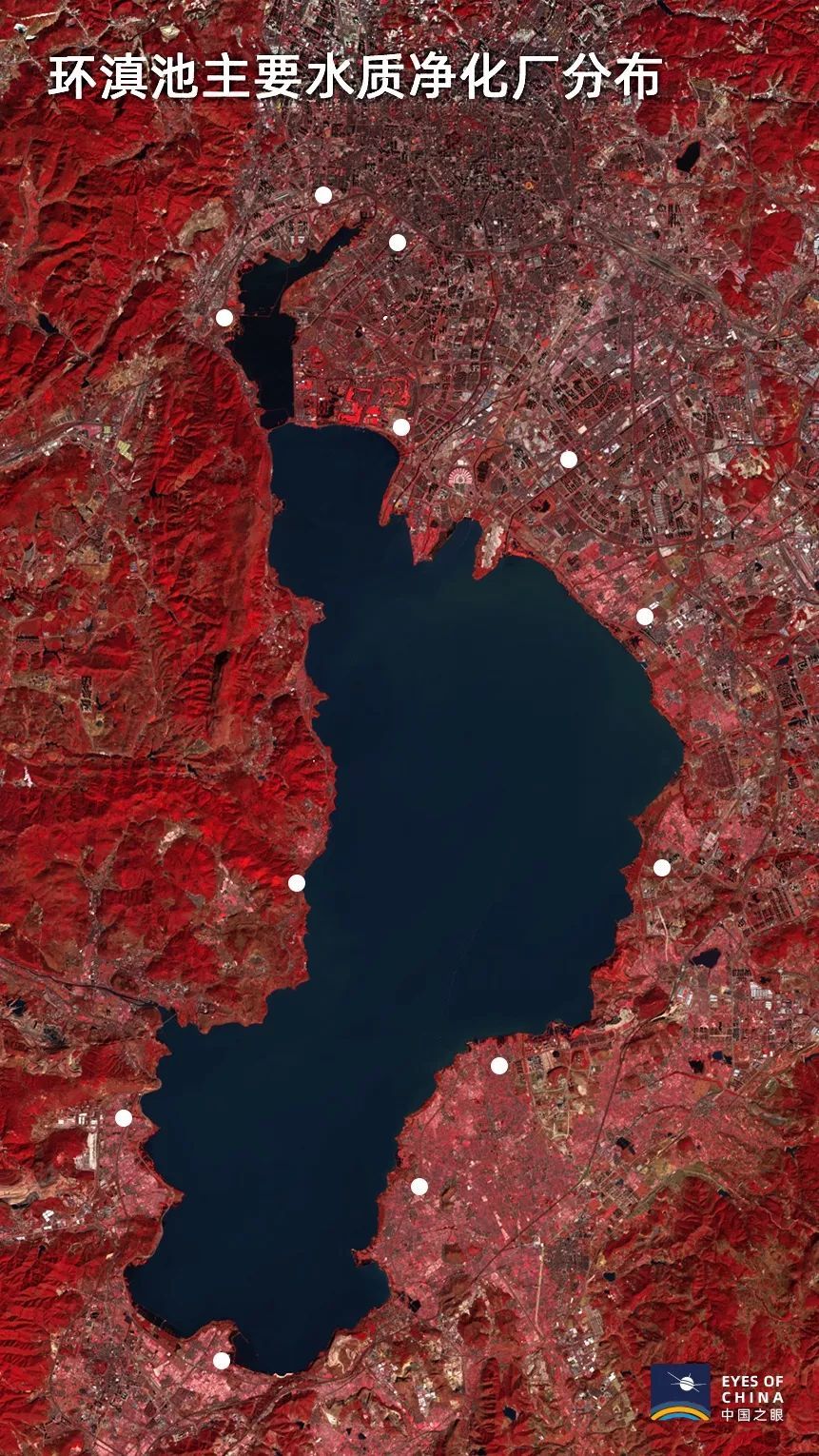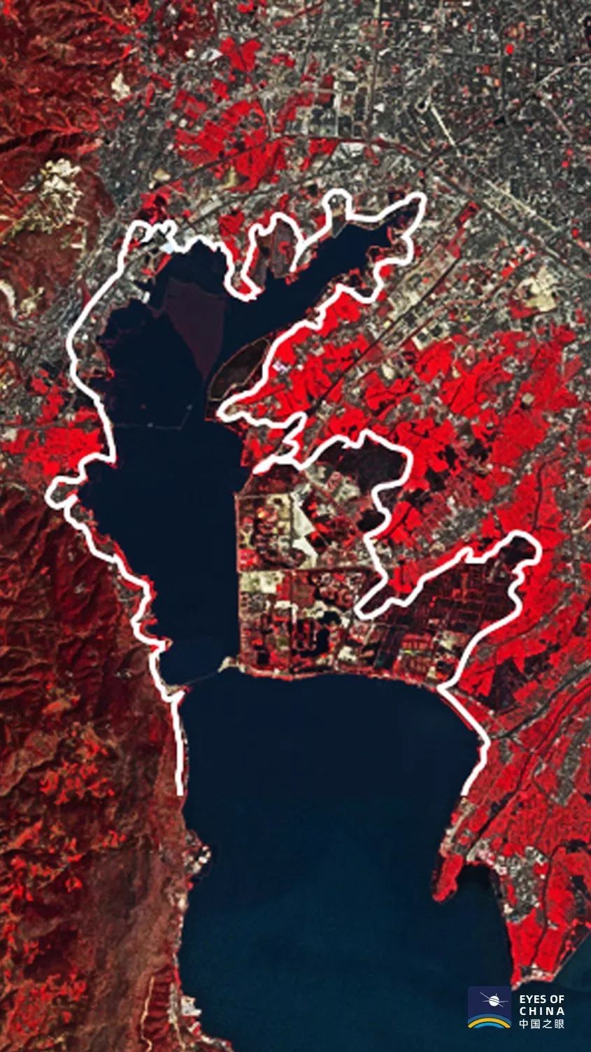 从卫星俯瞰滇池东岸,来自西伯利亚的红嘴鸥像在碧绿湖面撒下片片飞花。