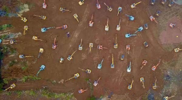 1月23日晚,35台反铲、10台推土机、8台压路机已到达现场,开始土地平整工作。相关设计方案将在今日完成。目前,现场已有上百台挖掘机等机械进场进行场地平整。