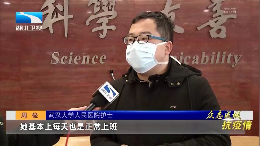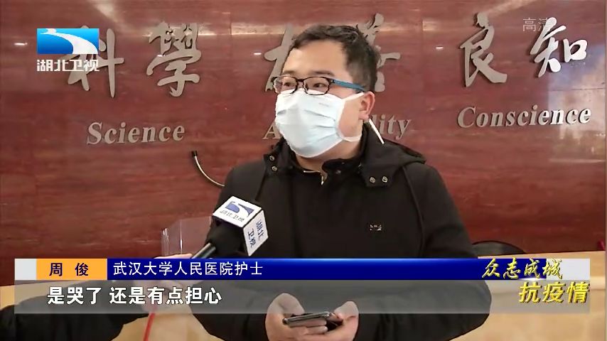 武汉大学人民医院护士 周俊:她哭了,还是有点担心,因为是医务人员,出现这种疾病,必须是冲在前面。