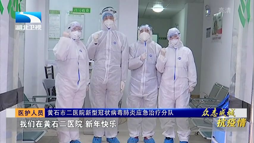 黄石市二医院新型冠状病毒肺炎应急治疗分队医护人员:我们在黄石二医院,新年快乐,百病不侵,黄石加油!