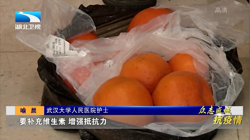 武汉大学人民医院护士 喻晨:我提的很重,但是还是带过去了,昨天买的 (橙子),他最喜欢吃这个。最近特殊时期,要补充维生素,增强抵抗力。