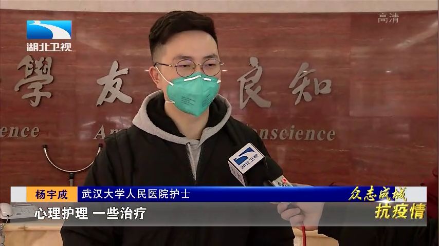 武汉大学人民医院护师 杨宇成:包括他们(患者)的生活护理、心理护理、 治疗,全是我们一对一特级护理在那里做。