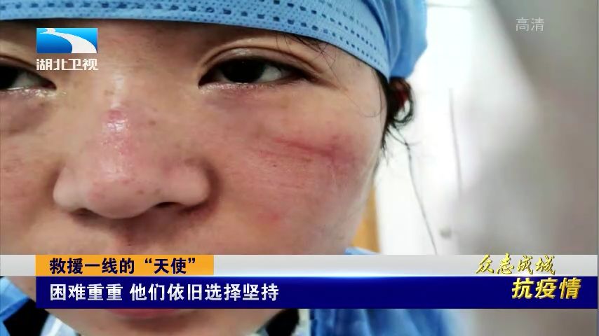 在武汉市中心医院,忙碌了一上午的护士长倪芳和护士袁婷,在走出隔离病房、摘下口罩的时候,才发现脸上已经被勒出了一道道红印,鼻梁上甚至都磨破了皮。