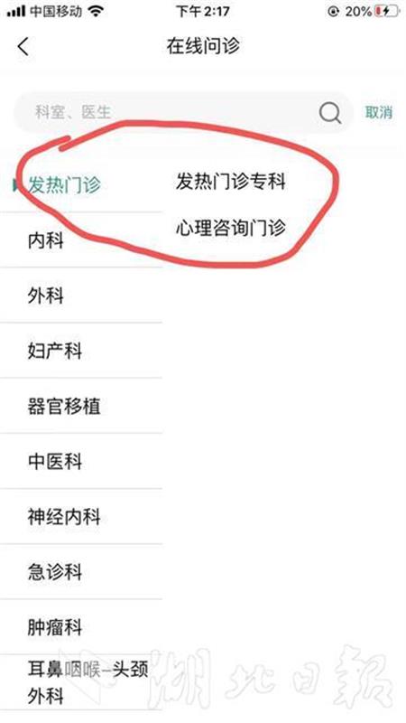 2、找到“在线问诊”板块,点击进入,即可看到发热门诊,选择对应医生发起咨询即可。