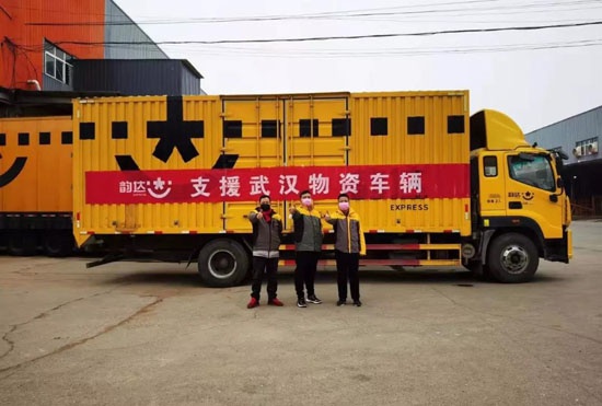 由韵达河南郑州分拨中心联合当地口罩生产商筹集的130多万副口罩、由韵达山东济南分拨中心、潍坊分拨中心购买的消毒水、口罩、医用酒精等医疗物资,已于1 月25日统一由韵达郑州分拨中心运输至武汉,用于疫情救援。