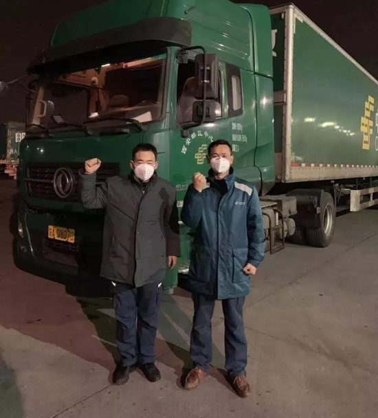 1月26日,一辆由申通快递承运,满载40吨蔬菜、肉类等生活必需品从重庆出发顺利抵达武汉。