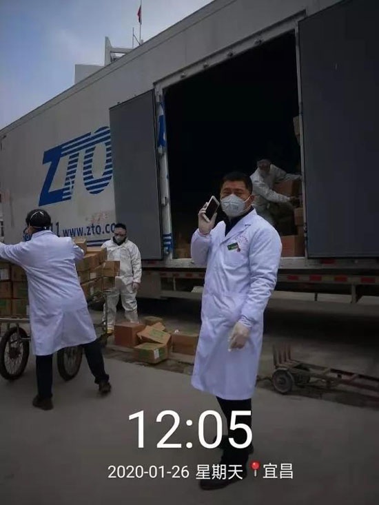 1月26日,由中通快递连夜从江苏江阴发往湖北省宜昌市的救援物资已经到达到达湖北宜昌第三人民医院。