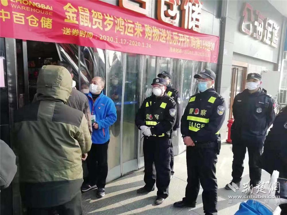 9时许,江岸区分局二七警务站民警接到居民反映,中百仓储超市开门时间未到,百余群众已经在门口排起了队。为防止发生危险,警务站站长刘玮将早高峰时段的警力都调至超市门口,帮助维护现场秩序。在现场,民警不时提醒各位市民注意安全,戴好口罩,做好安全防护工作。超市开门了,民警主动上前为顾客测量体温,在与超市工作人员的共同配合努力下,超市购物秩序良好,未出现拥挤。