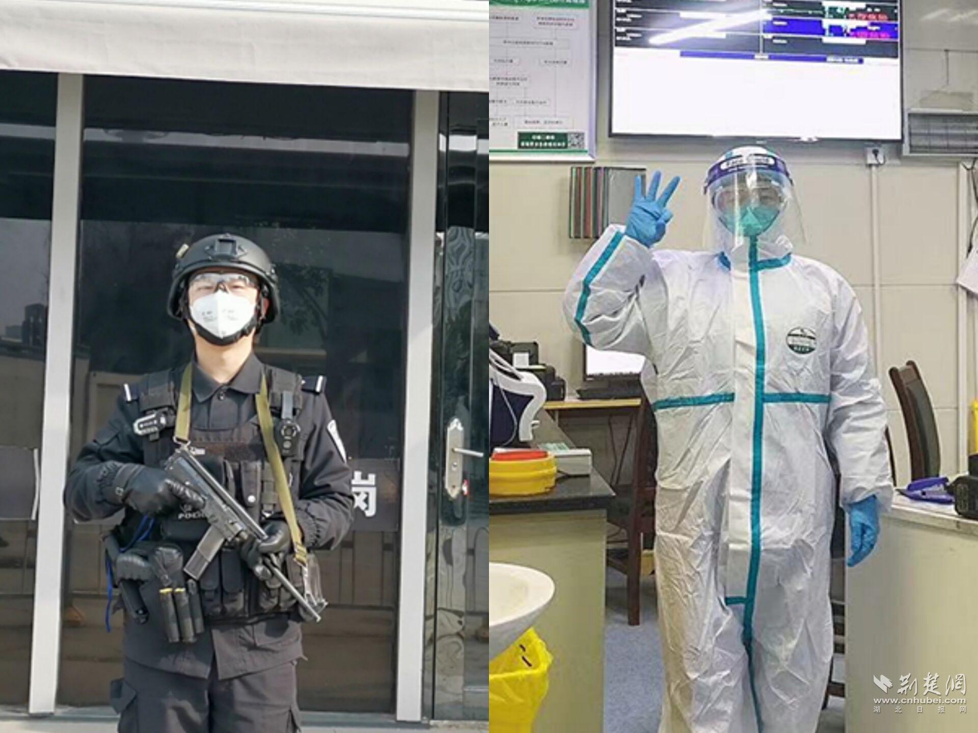 武汉市公安局特警支队驻武昌大队有6名警嫂都是医护人员,其中4人在武汉大学中南医院当护士,这样的巧合背后还有一段故事。2016年3月18日,特警支队驻武昌大队和中南医院举办了一场青年联谊会,在参加活动的特警小伙和护士姑娘中,有4对彼此相中,并最终结为夫妻。疫情发生以来,4位护士妻子冒着被感染的风险奋战在中南医院的各个科室,她们的丈夫也与全市两万汉警一起,承担着维护社会稳定的任务。特警毛炳捷和妻子付行大年三十刚到黄冈老家,还没来得及吃上年饭就被各自单位召回,夫妻二人一人在汉街武装驻巡,一人在ICU内抢救病人,直到正月初六都没能见上一面。