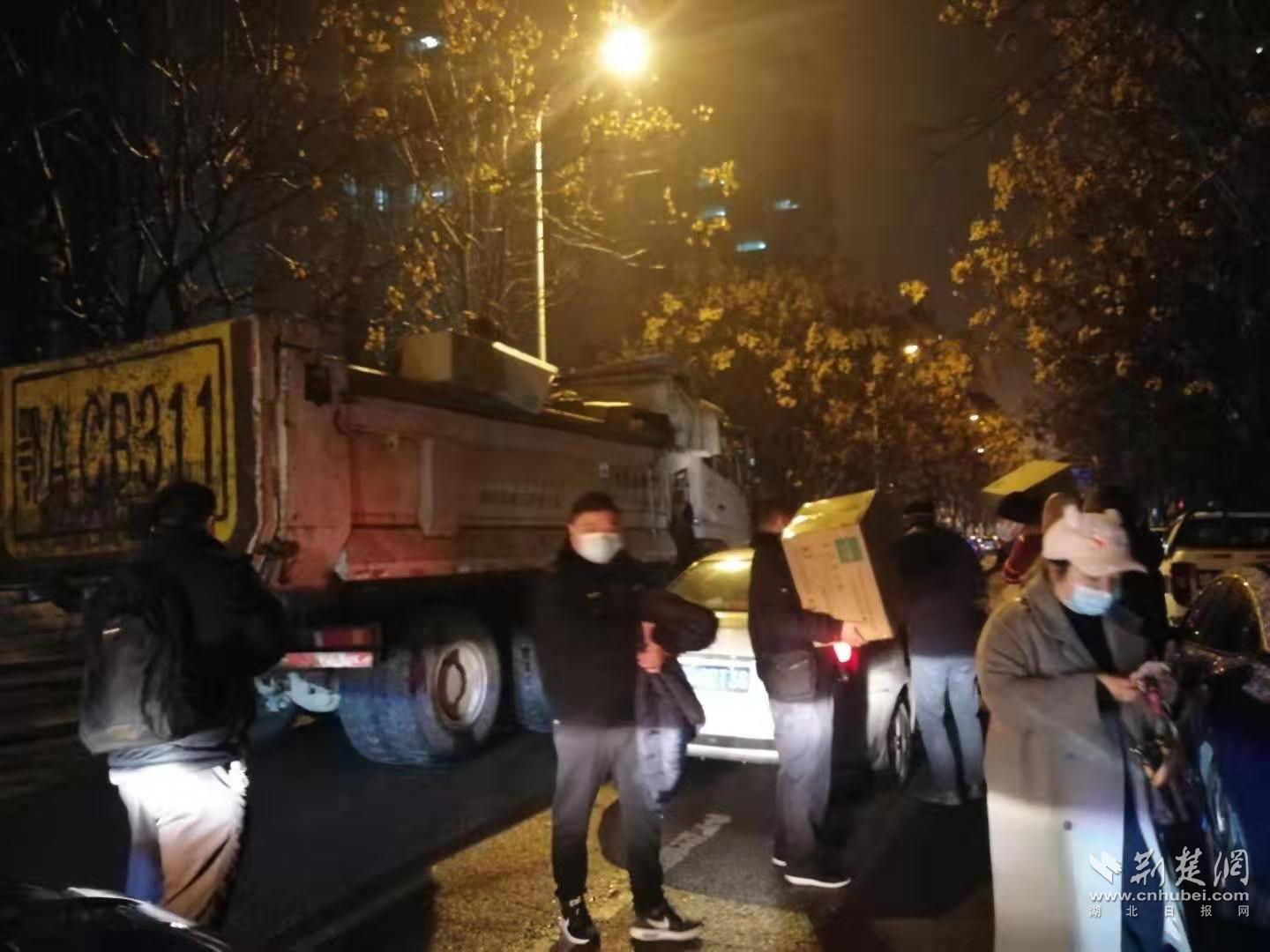 但当大家开始行动时,却被告知出不了城,时间已经是夜里十点钟,大家都很着急。就在这时,有朋友把此事反映给了江岸区城管局,该局领导收到消息后很重视,很快派了两个队长对接我们。在城管局与政府相关部门沟通后,我们顺利出城。