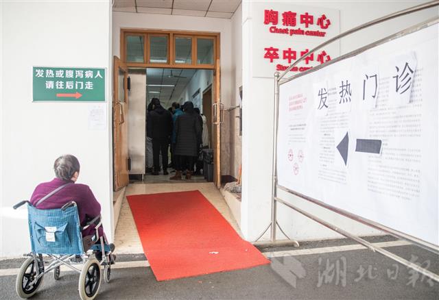 2月1日,患者在武汉市第八医院卓尔长江应急医院发热门诊排队就医。(湖北日报全媒记者 柯皓 摄)