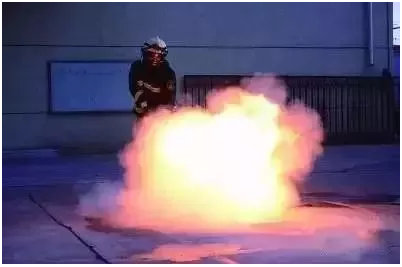 在第三组实验中,消防员使用干粉灭火器灭火。直接对着起火点的根部进行喷射。在5秒钟内,干粉就完全覆盖了金属盘,火苗熄灭。但由于喷射干粉时气压较大,部分酒精被“吹”到了金属盘外继续燃烧了一会儿。