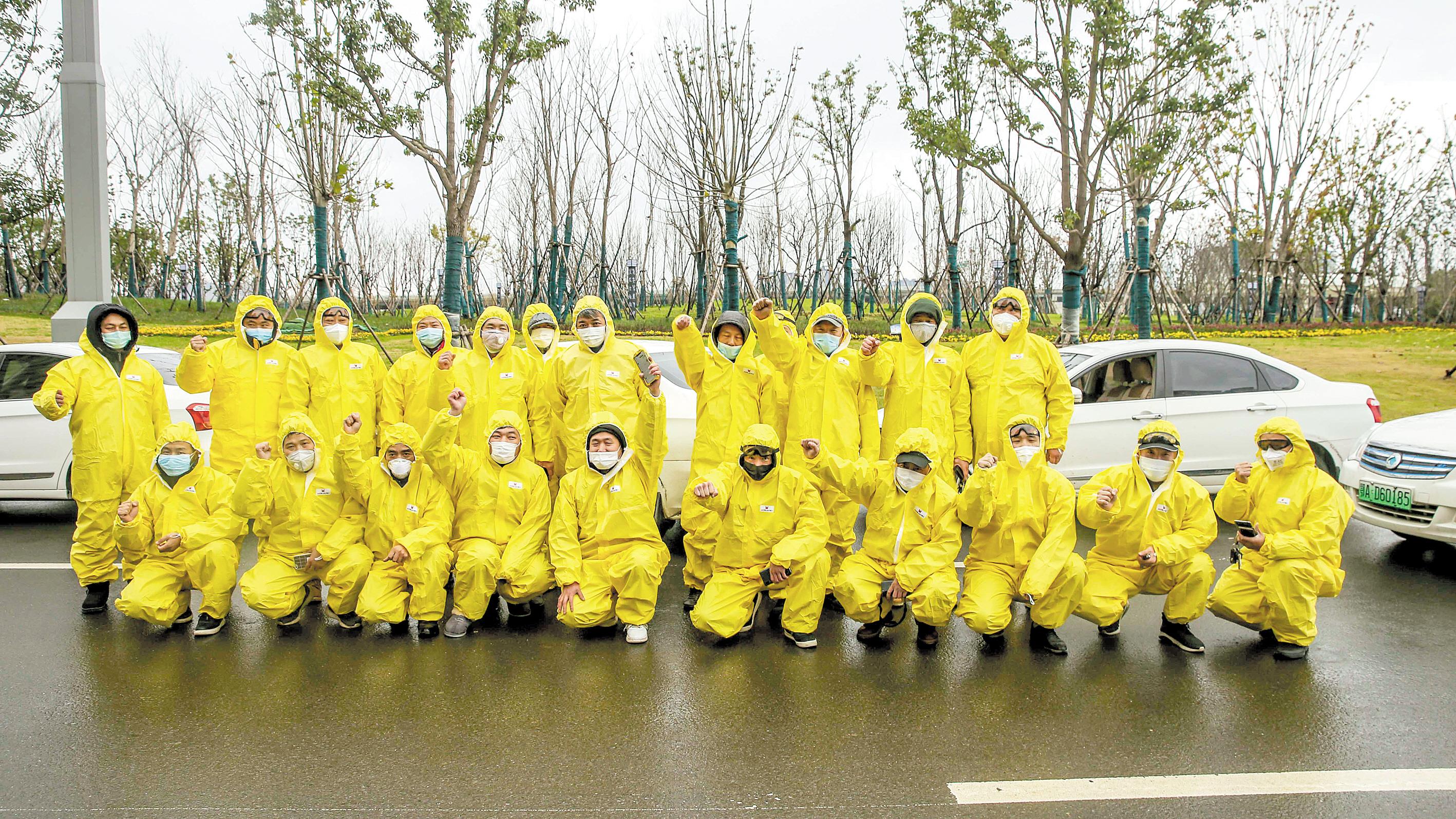 2月1日,早上7点刚过,邹家伟掀开被子,就拿起手机,首先打开武汉市珞南街石牌园社区的派车工作群,查看有没有社区干部和居民的用车信息。他简单洗漱后,拿起墙角的一件黄色隔离服熟练地穿上,关上灯和取暖器走出简陋的出租屋。从1月26日大年初二他加入武汉市社区志愿服务车队以来,每天如此。