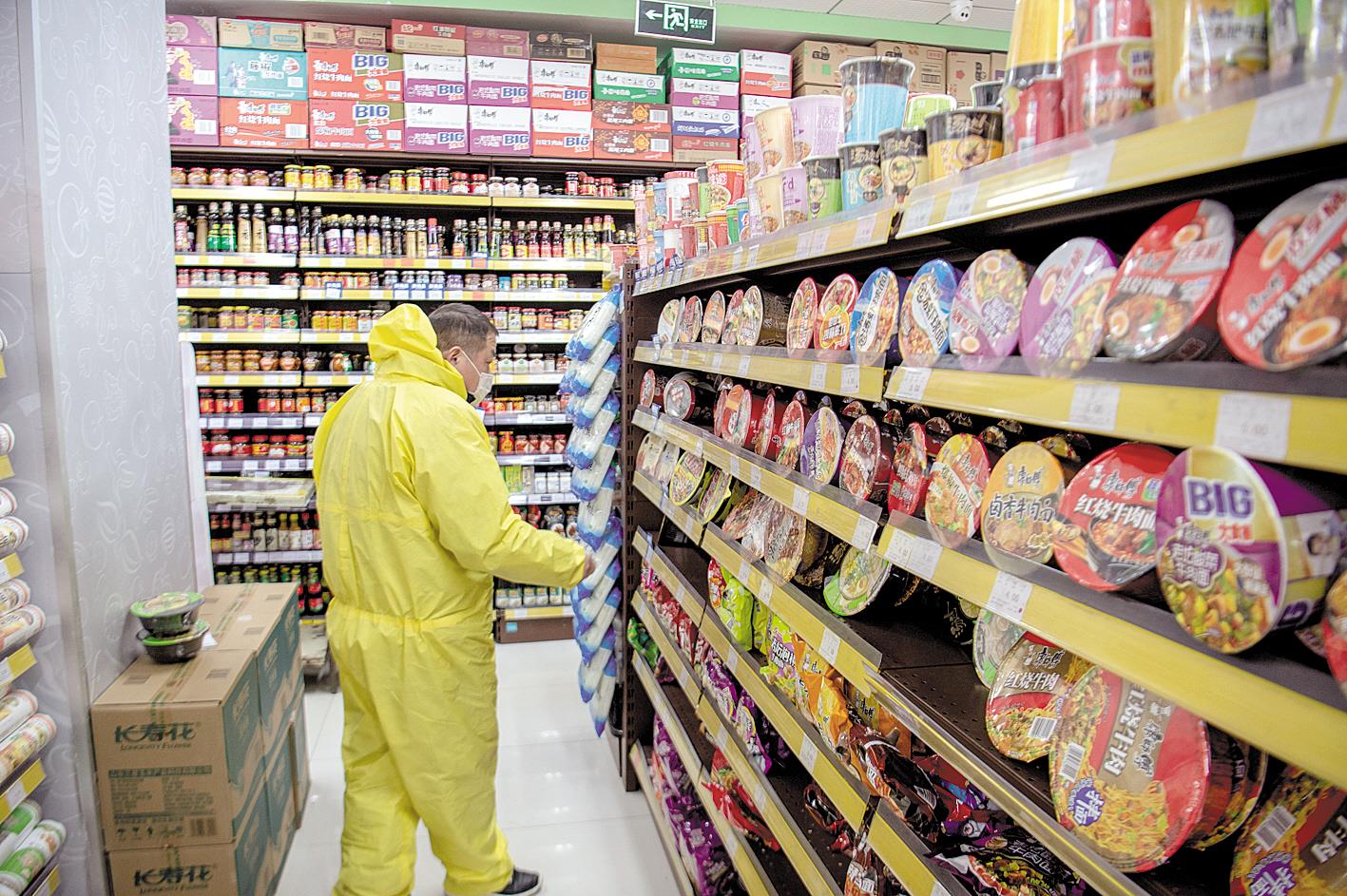 社区附近的餐馆都没开张,志愿车司机吃得最多的就是方便面。 (湖北日报全媒记者 魏铼 摄)