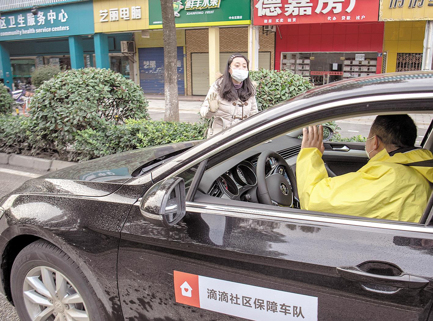 公共交通停运和私家车禁行后,武汉市新型肺炎防控指挥部于1月24日紧急征召6000台出租车、网约车,分配给中心城区每个社区3台至5台,由社区居委会统一调度使用,为辖区居民出行提供免费服务,为生活不便居民上门免费提供送餐、送菜、送药等居家服务。1月25日中午,这批志愿车迅速集结到位,由武汉部分出租车公司和滴滴、东风等网约车公司,共9家企业一同组建,开始提供服务。