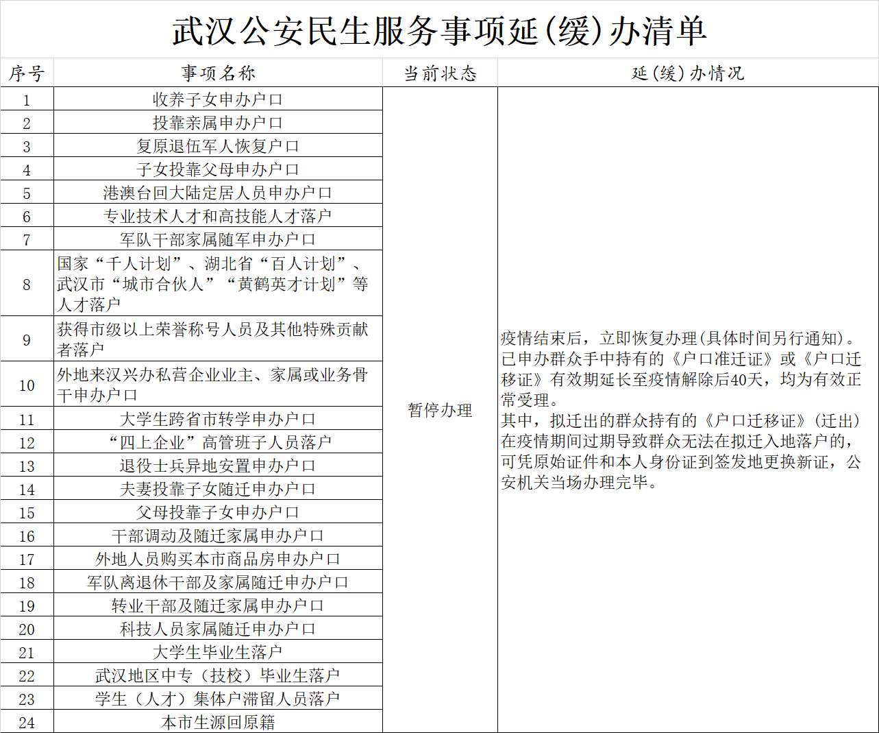附:武汉公安民生服务事项延(缓)办清单