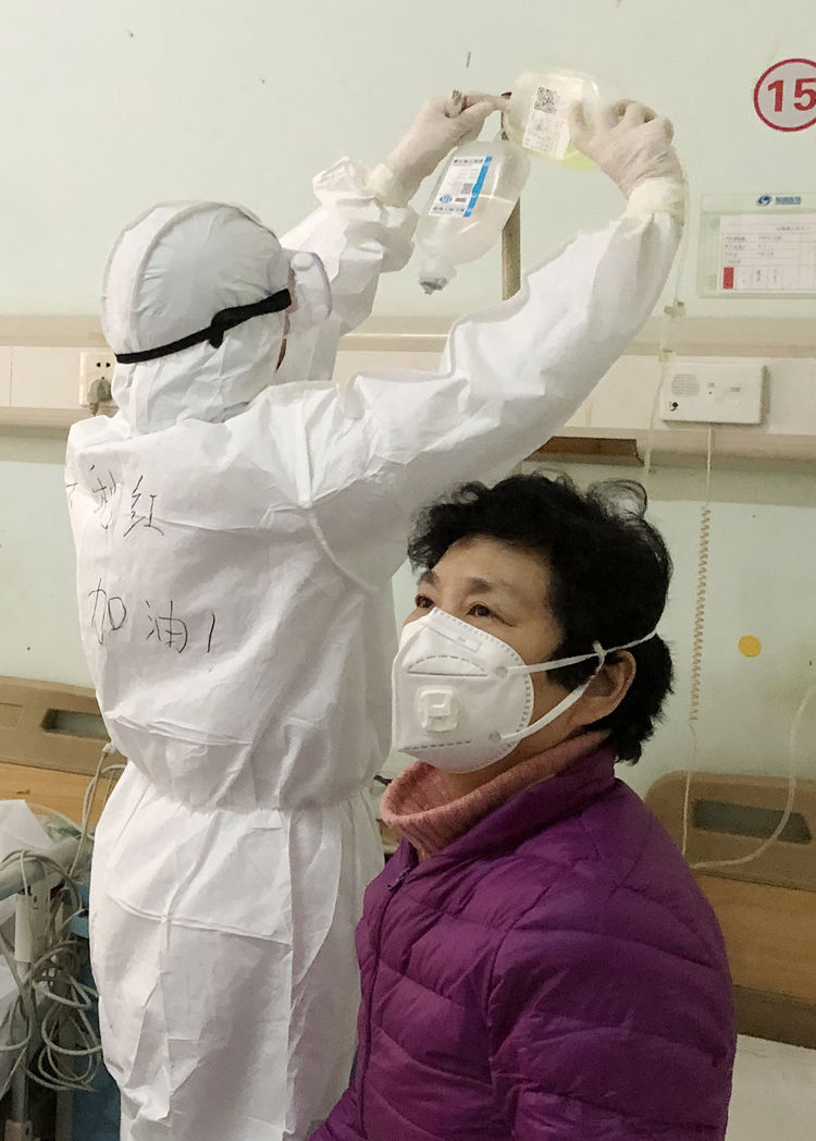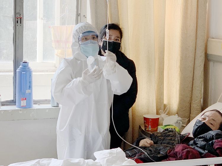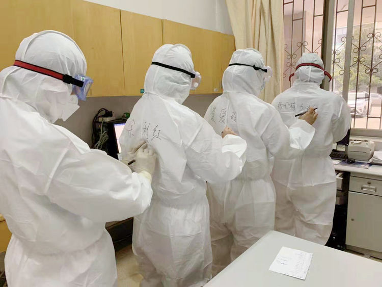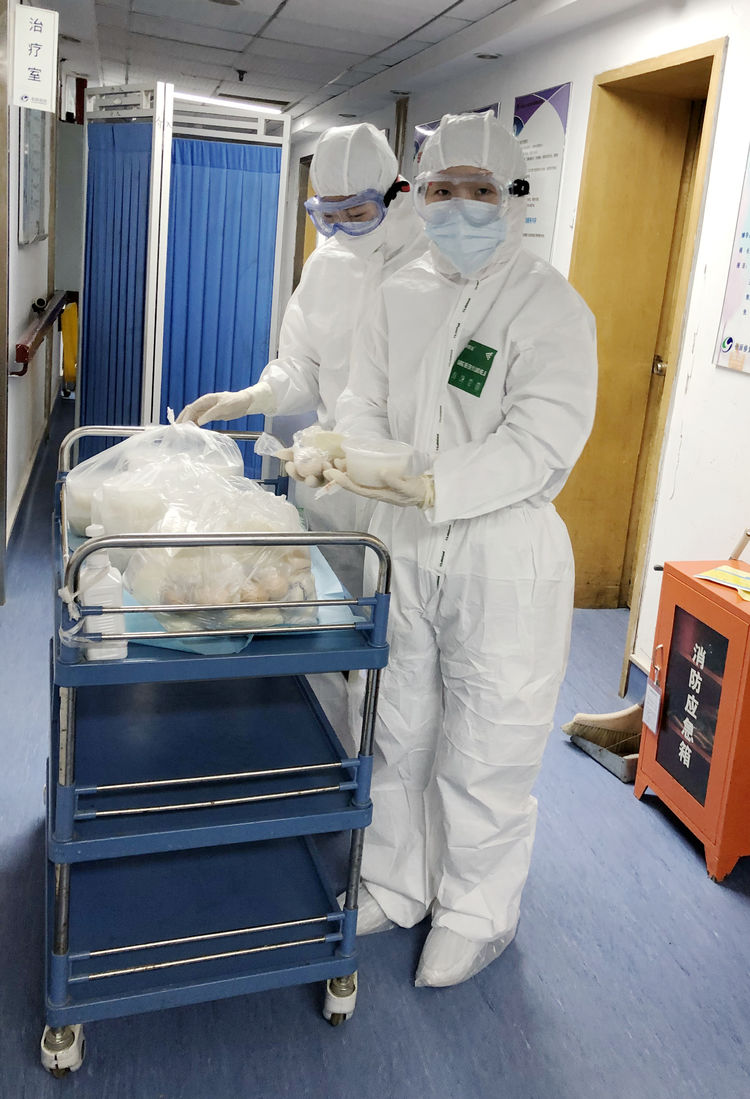 她会要求我们医护人员每天上班前量体温、测血氧饱和度,大家穿好隔离服后互相检查,洗手液、酒精、快速手消会出现在我们需要的每个角落。她常说:“病人这个时候很脆弱,我们在做完治疗后,不要忘了给他们关心和力所能及的帮助。”隔离病房的病人为了避免交叉感染,是不允许出病房的,所以像打开水、热饭、倒垃圾、倒小便这些,只要是病人不能做的,就是我们要做的。