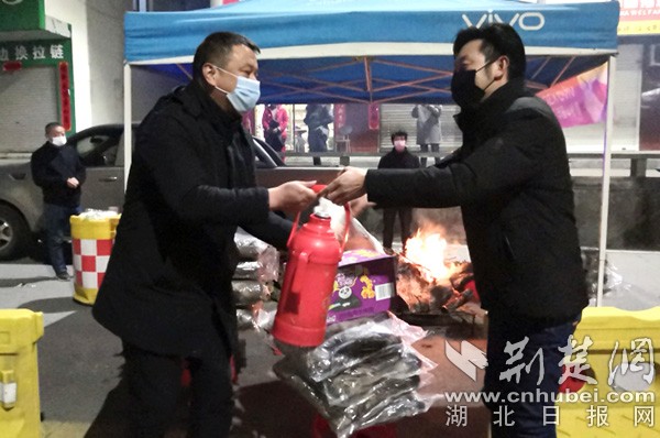 每天早晨七点多,夫妻俩便一同出门,奔赴各自的“战场”。张志学白天在村里宣传、劝阻村民出门,晚上则到卡口帮忙值守,年夜饭用泡面对付,冷了就在火盆边搓搓手,只为了做好车辆拦截,防止病毒扩散。陈金玉每天一户一户的敲响武汉返乡在家隔离的村民家门,每天两次为他们测量体温,查看身体状况,确保“早发现、早隔离、早诊断、早治疗”。