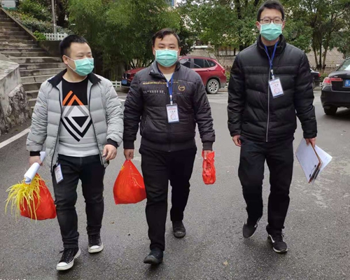 1月26日,接县指挥部通知,农业农村局牵头12个单位包保万密斋社区的疫情联防联控工作。按局党组统一安排,郭明锐等5名年轻党员干部参加万密斋社区疫情防控工作,接到通知后,他们二话没说,准时在社区集结,听候命令。