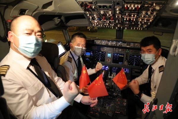 航班两位机长朱海龙和安裕光均有超过35年的飞行经验和过硬的飞行技术。朱海龙表示:“疫情发生以来,南航全体飞行员时刻准备着,只要祖国召唤,我们随时出发!”作为空军转业飞行员,安裕光说:“关键时刻,命令就是冲锋号!只有一往无前,永远向前,随时候命!”