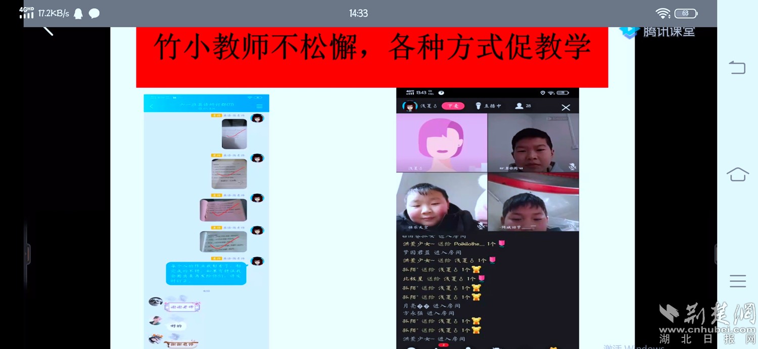 典礼后,竹坪小学根据省市县对于开展在线教学的相关要求,结合该校实际情况,按计划全面开展在线教学。学生家长对这种新颖的教学方式给予肯定,不少学生给老师在线点赞。
