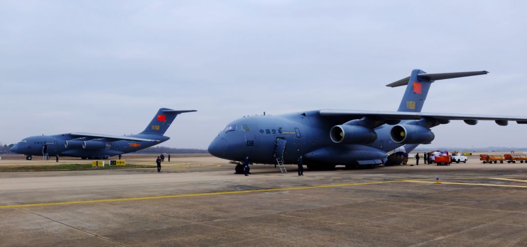 13日凌晨,空军出动运-20、伊尔-76、运-9共3型11架运输机,分别从乌鲁木齐、沈阳、西宁、天津、张家口、成都、重庆等7地机场起飞,向武汉空运军队支援湖北医疗队队员和物资。上午9时30分许,11架空军运输机全部抵达武汉天河机场。这是我国国产运-20大型运输机首次参加非战争军事行动,也是空军首次成体系大规模出动现役大中型运输机执行紧急大空运任务。
