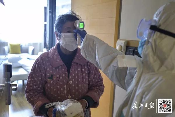 武汉市江岸区某医学隔离观察点,医护人员每天早晚为被隔离人测体温 长江日报记者胡冬冬 摄