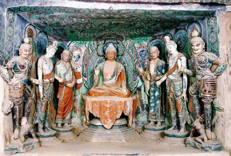中国现存四大石窟中,云冈、龙门石窟皆因北魏诸帝尤其是孝文帝所置,虽均地处京都,但因人置废,故都具有很强的时段性。麦积山石窟最得山水地利灵秀,自是禅僧遁世隐修的不二之选。而敦煌是河西诸绿洲中为戈壁环绕的最小绿洲,其经济实力与帝都及开发较早的甘肃东部相较,差距之大不可以道里计。但又是什么原因使从东而来的乐僔和法良独独垂青于此呢?