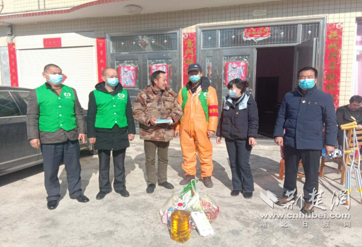 谷城县退役军人事务和谷城义工协会为徐忠志送来爱心礼包。通讯员供图