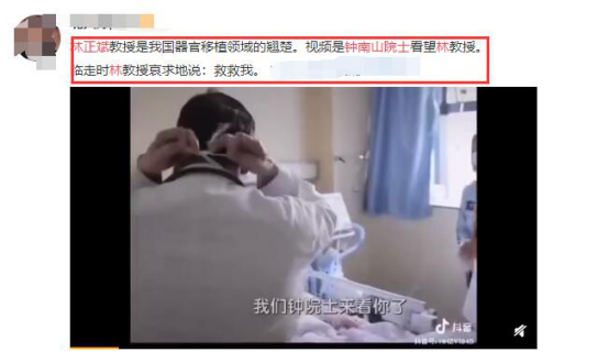 这两天,网上流传着一则“钟南山院士查房的视频”,配文称,“视频是钟南山院士看望林教授。临走时林教授哀求地说:救救我。”