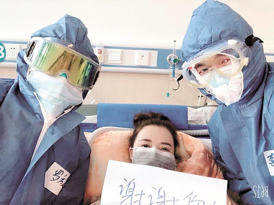 医护人员与患者相互加油鼓劲。(视界网 王凯 摄)